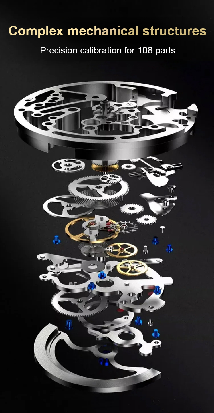 ⚙️ Precision calibration with 108 parts! Multi-functional dial + calendar adjustment, accurate and reliable.