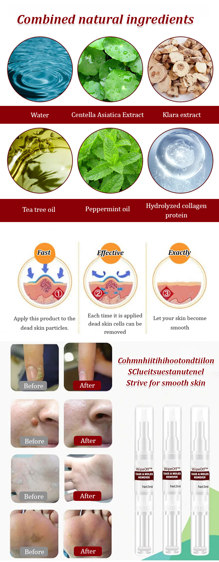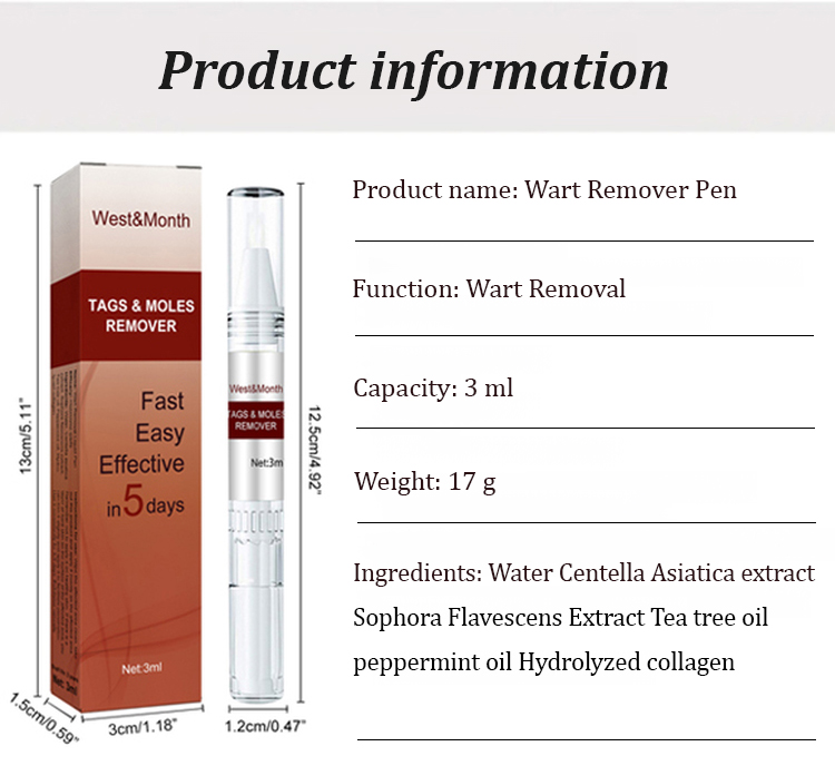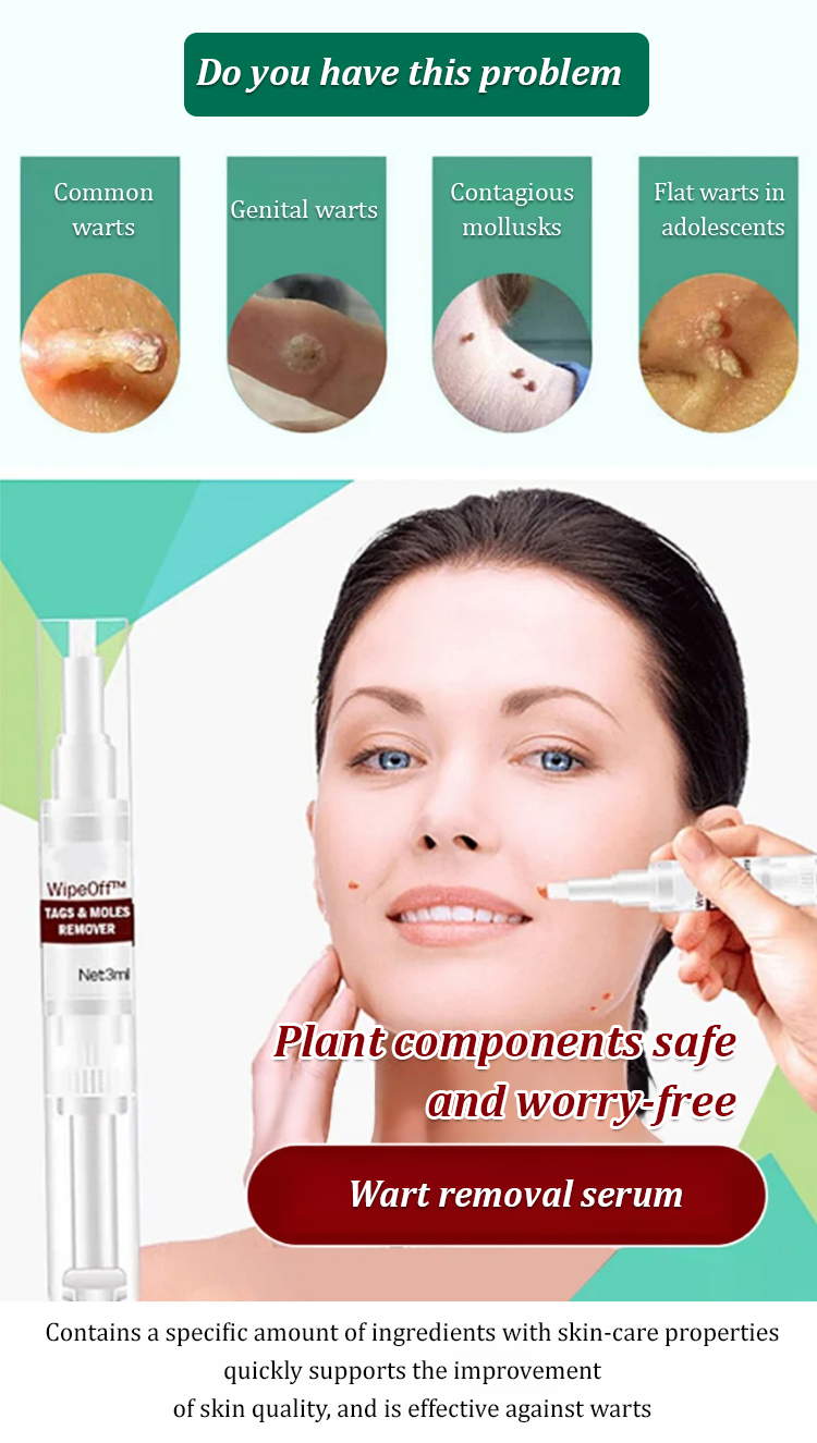 🖋️ Powered by natural ingredients (Centella Asiatica, Tea Tree Oil, Peppermint Oil), this wart remover pen delivers noticeable results in 3 days, with warts/moles falling off in 5-7 days! 🚫 No scars, no pain, no harsh additives – safe for all skin types and effective on common warts, flat warts, and contagious mollusks.