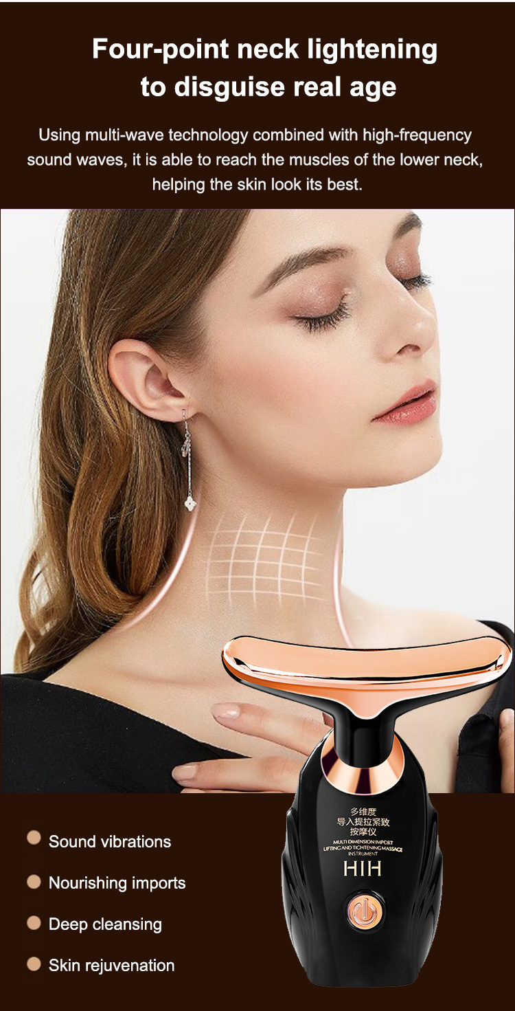 💆✨ Neck Lifting Device - LED Light Therapy & 45℃ Heat, Anti-Wrinkle Face Neck Massager ⚡🔥 3 Gears, Microcurrent for Neck Line Reduction